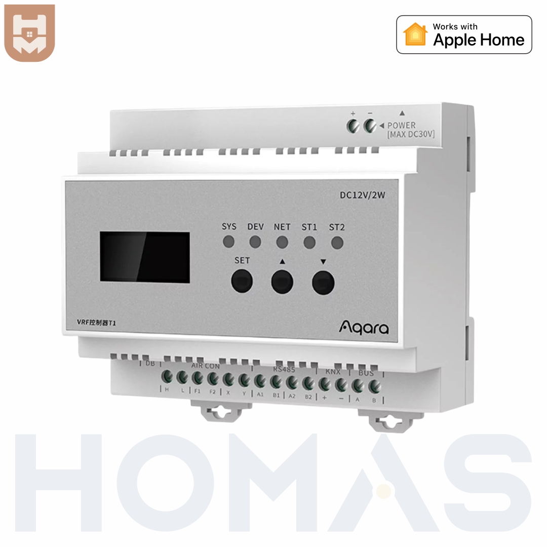 Bộ điều khiển điều hoà trung tâm Aqara VRF T1 cũng sẽ hỗ trợ Apple HomeKit. Điều này giúp nó kết hợp được với nhiều thiết bị thông minh khác như: cảm biến nhiệt độ, cảm biến cửa, cảm biến hiện diện,… để tạo ngữ cảnh tiện nghi và điều khiển bằng lệnh thoại với trợ lý ảo Siri nhanh chóng.